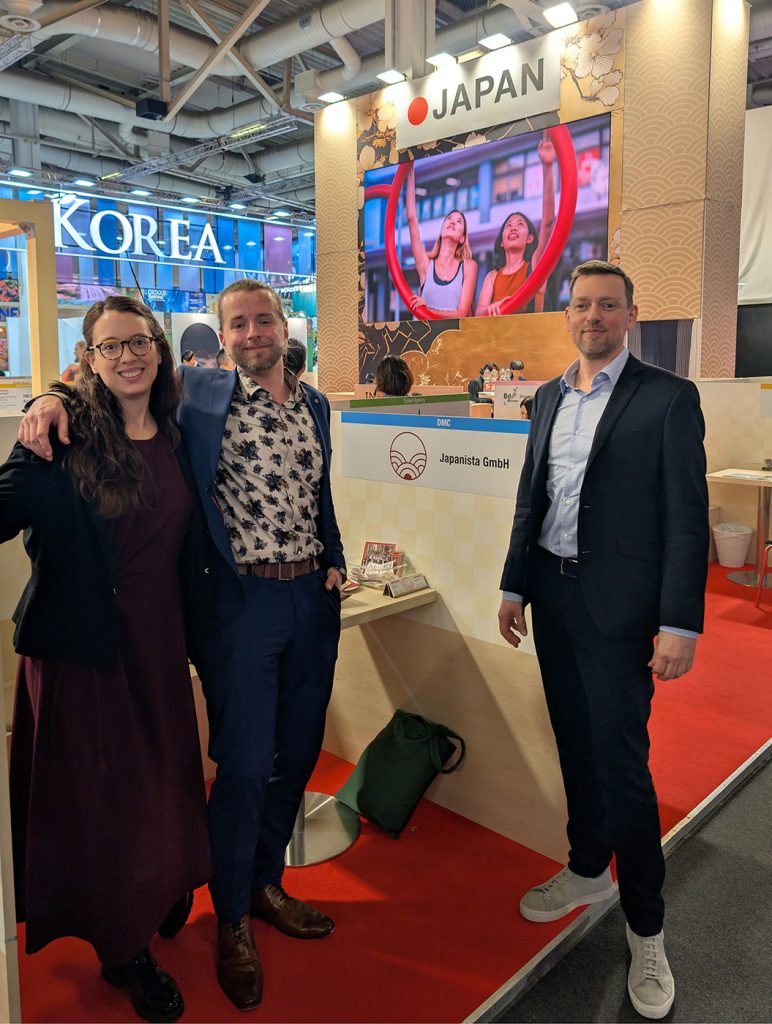 Unsere Geschäftsführer Daniela Lange und Janis Klausenitzer mit der Unterstützung unseres Produktmanagers Jens Winter, waren wieder als Unterausteller der Japan National Tourism Organization (JNTO) am Japan-Stand vertreten.